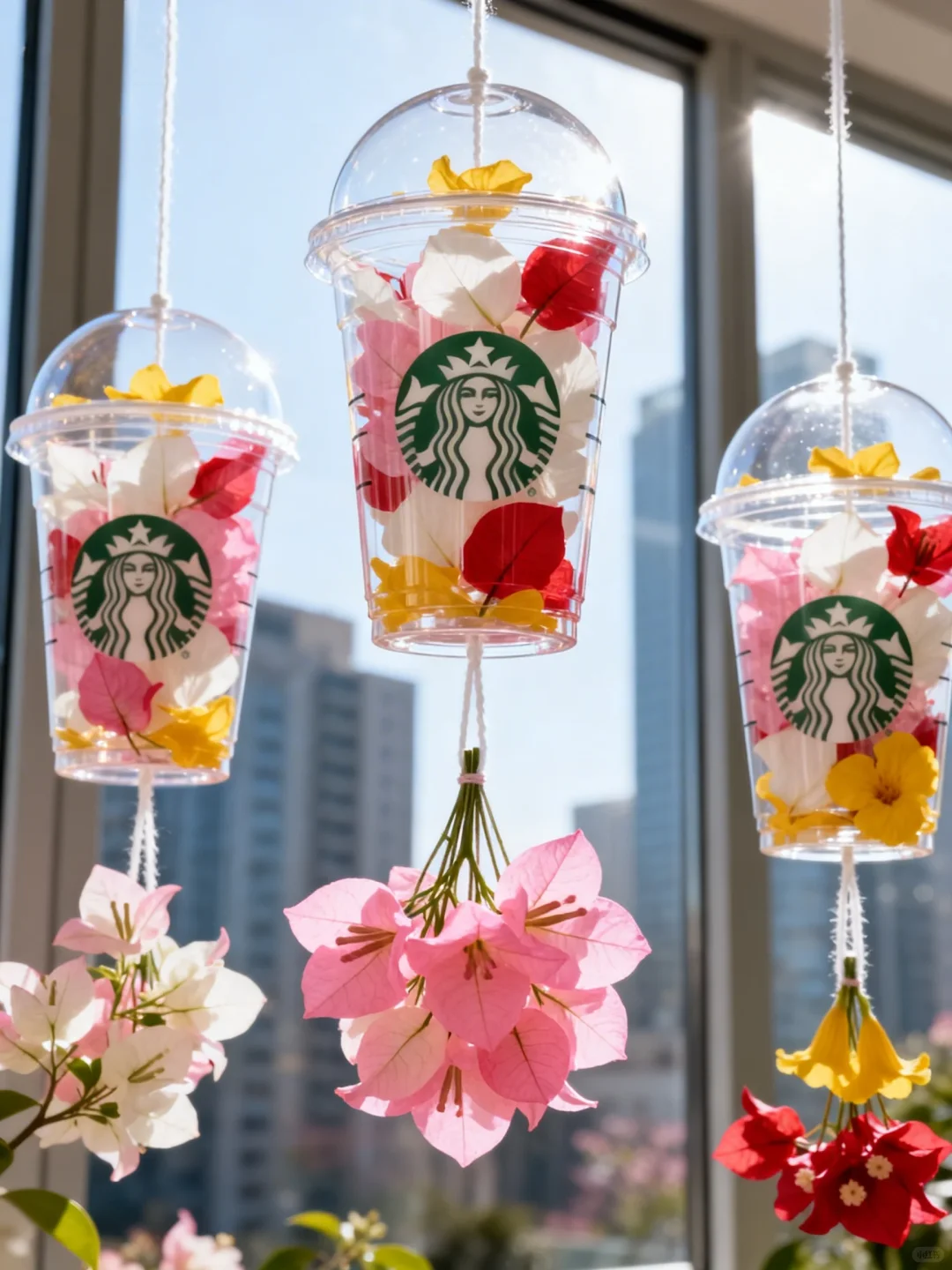 △咖啡杯改造的鲜花“风铃”