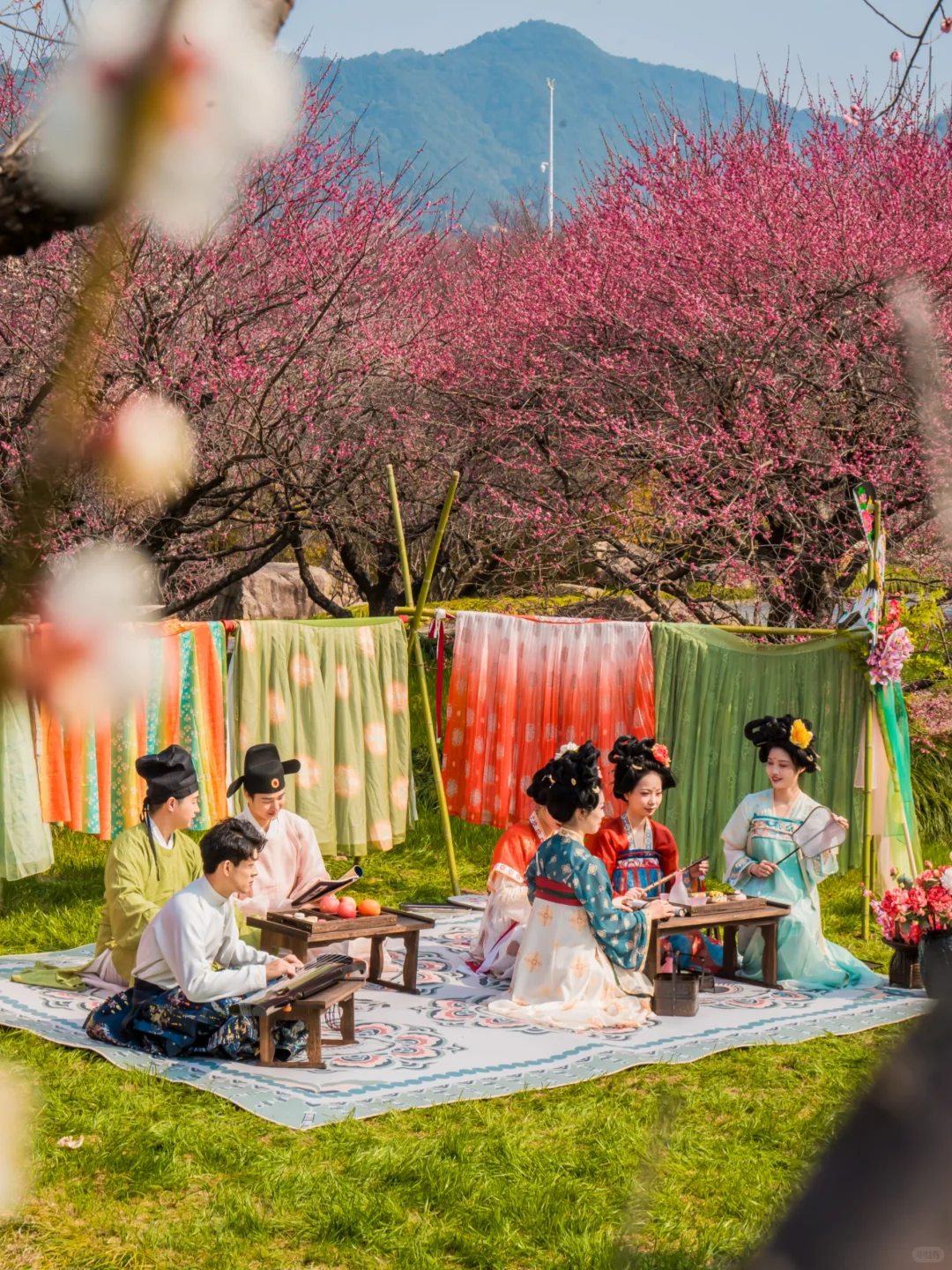 如果想要更有仪式感一些,也可以鼓励大家穿汉服来,沉浸式体验古风探春,氛围感拉满。