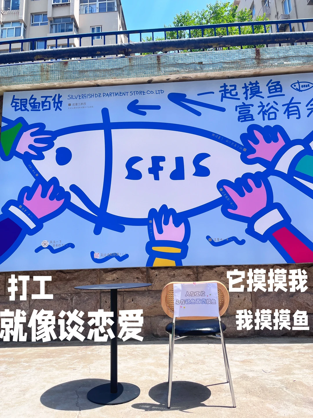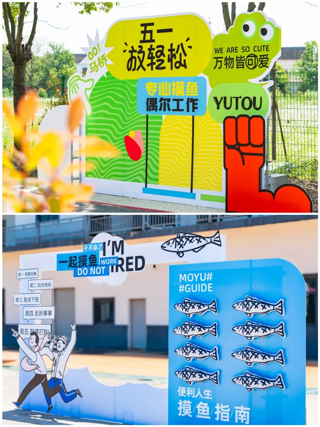 可以设置一个摸鱼打卡点,供大家拍照打卡。可以简单些,也可以复杂些。