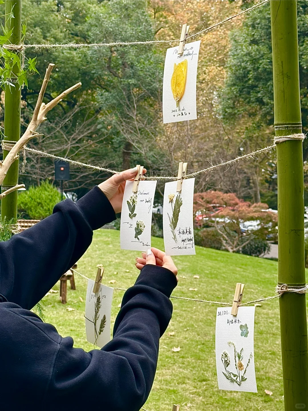 签到处可以选择DIY干花明信片签到,亲手留住春日限定美好,根据自己的喜好,每个人都能做出专属作品,既能动手解压,成品还能带回家做纪念,仪式感直接拉满。