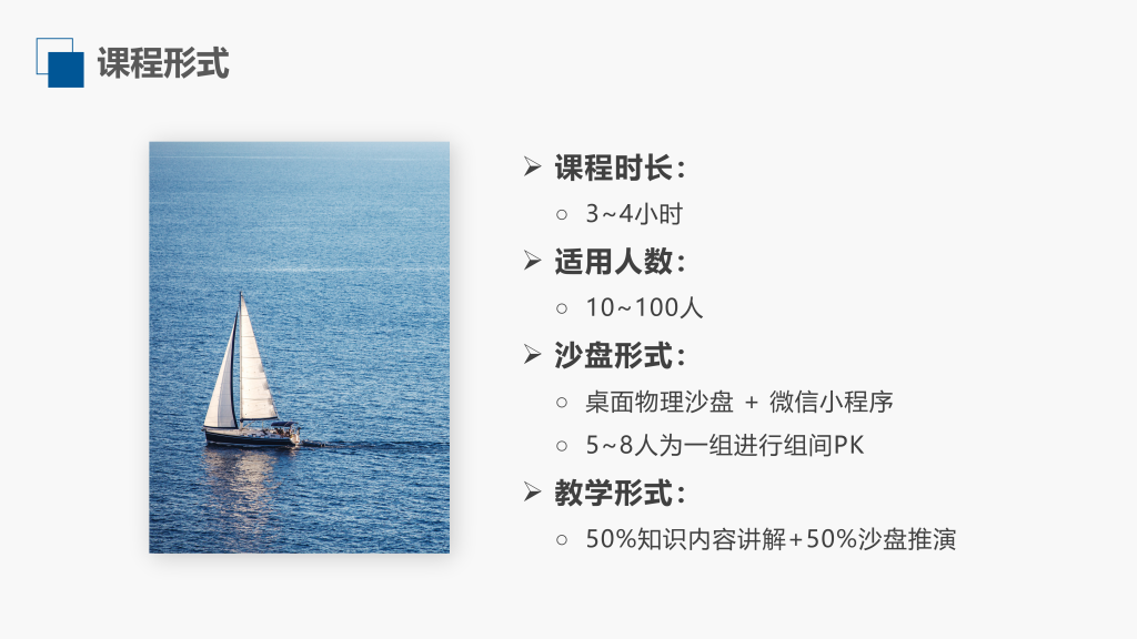 【授课方式】沙盘模拟+团队PK+小组讨论+理论讲解