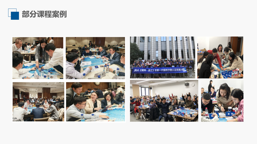 《沙漠掘金》课程是从加拿大引进的经典沙盘模拟课程,已被可口可乐、飞利浦、上汽集团、联想等多家世界知名企业引入为核心内训课程,并被清华大学、浙江大学、上海交通大学、复旦大学等多家国内知名学府列入EMBA课程。据反馈统计,90%的参与者承认《沙漠掘金》与自己平时的行事方法吻合度极高。